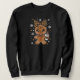 Cute and Trendy Gingerbread Girl! This festive design features a classic dark gingerbread cookie character styled with a large leopard print bow and a matching bow tie. She holds a sassy to-go cup, also decorated in the popular leopard pattern. With her large, sparkling kawaii eyes and sweet smile, she's ready for the holidays! Perfect for Christmas lovers, baking enthusiasts, and those who appreciate a blend of traditional holiday charm and modern aesthetic. The design is set on a dark background with scattered snowflakes and golden stars.