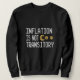 Superbe design de bitcoin représentant un monstre bitcoin dévorant des dollars et des euros avec la citation "L'inflation n'est pas transitoire".