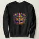 This women's sweatshirt is shown in black with a fancy Mardi Gras mask art print.