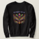 This men's pullover sweatshirt is shown in black with a fancy Mardi Gras mask art print.