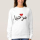 Caractères gras "Marhaba" en arabe = accueil, bonjour - des polices noires sont imprimées sur un sweatshirt avec un coeur rouge.