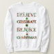 Diffusez la joie de Noël avec ce design mignon à motifs qui présente "Croire, Célébrer, Se réjouir, Noël" dans une typographie festive remplie de motifs de vacances rouges et verts. Chaque lettre met en valeur des ornements, des sapins de Noël, des poinsettias et des motifs saisonniers classiques qui apportent joie et chaleur à vos célébrations.