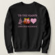 TIS LA SAISON sweatshirt rose NOËL pour hommes et femmes de tous âges. Le design montre un coeur, un pudding de Noël et un graphique d'arbre de Noël moderne en couleur rose tendance populaire. En haut, on peut lire "TIS THE SEASON" et en dessous, on peut lire NOËL BÉNÉDICES. Tout le texte est PERSONNALISABLE afin que vous puissiez personnaliser ce pull de Noël rose en ajoutant votre nom et en créant des sweatshirts correspondants pour toute la famille.
