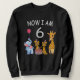 Joyeux 6e anniversaire. Funny and lovely Kids Birthday design with a cute Elephant, two ferrets and a girafe celebrating your birthday at the zoo.