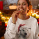 aquarelle d'un ours polaire avec un casquette d'hiver rouge en style noël