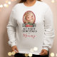 Sweatshirt de Noël de famille avec une photo de votre bébé avec une bordure rouge à deux tons, des arbres de Noël aquarelle, un pick-up rouge, et le mignon dicton "mon premier noël comme maman".