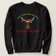 Reindeer avec chapeau de Père Noël et un ornement accroché à son bois avec une planche de dessin tricot. Ça a l'air super sur n'importe quelle couleur foncée. Illustration tirée à la main par McBooboo.