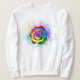 Grand rose fleuri avec pétales arc-en-ciel sur arrière - plan blanc, peint sur des éclaboussures de peinture colorée et lumineuse. 3d