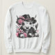 Une jolie vache Highland noire et blanche décorée d'un élégant casquette noir orné de fleurs roses, au charme et au design artistique.