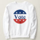 Votez ! Utilisez votre sweatshirt pour encourager votre communauté à voter. Le texte bleu au centre dit "Vote". Une bande bleue avec trois étoiles blanches est au-dessus du texte. Une bande rouge avec trois étoiles blanches est sous le texte.