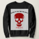 Red skull emblem with bold white features and a fierce pirate vibe. Tattoo-inspired, edgy typography elevates apparel for bikers, skaters, and punk enthusiasts seeking a bold sea-roots statement.