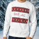 Chandail moche de Noël. Motif révoquant la conception traditionnelle du pull tricoté .Deux bordures avec le texte Dieu Jul =Joyeux Noël en suédois .Design par Alma Wad.