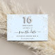 Eine gmädchenhafte und trendige Save the Date-Karte für eine Sweet 16, 16. Geburtstagsfeier. Ein Baby blauer Hintergrund mit Imitaten silberfarbenen Glitzer Staub. Personalisieren und fügen Sie Datum und Name/Alter hinzu. Der Text: Save the Date ist mit einem großen angesagten, handgeschriebenen Stilskript geschrieben. Nummer 16 mit einem Schriftart im Ballonstil.