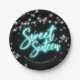 Sweet 16 Birthday Aquamarin Neon Glow Dunkles Part Pappteller