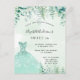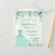 Une invitation branchée pour une Sweet 16, 16ème anniversaire fête, thème forestier enchanté. Un arrière - plan vert à l'eau avec des fougères et de la verdure d'eucalyptus, une robe verte. Le nom est écrit avec un script de style moderne écrit à la main. Personnalisez et ajoutez les détails de votre fête. Conseil : Si vous ne voulez pas qu'il ressemble à une carte postale, cliquez sur customiser, allez à l'arrière et retirez le séparateur et le timbre postal.