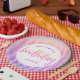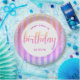 "Alles Gute zum 16. Geburtstag". Hier ist eine einzigartige Ergänzung zu ihrem Geburtstag fête! Nutzen Sie dieses atemberaubende, moderne, winzige funkelnd türkisblaue Imitat Glitzer Konfetti Punkte und gelb rosa orange lila ombre Typografie-Skript gegen ein hellrosa und Regenbogen ombre Glitzer Streifen Hintergrund, Papier Platte für ein Ereignis zu erinnern. Personalisieren Sie den benutzerdefinierten Text mit Ihrem Ehrengast. Sie haben die Wahl zwischen 2 Größen: 7" oder 9". Garantiert, um ihrem besonderen Party stilvollen Spaß zu verleihen! In dieser trendigen und besonderen Kollektion sind auch passende Einladungen, Servietten und andere Geburtstagsköche erhältlich. Geben Sie einfach den Namen des Geburtstagsmädchens ein und Sie können diese Papiertüte ganz einfach personalisieren. Bitte schicken Sie mir eine Nachricht mit Fragen oder Wünschen.