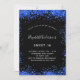 Eine mädchenhafte und trendige Sweet 16, 16. Geburtstagsfeier. Ein schicker schwarzer Hintergrund. Dekoriert mit königsblauen Imitaten Glitzer, Glitzern. Personalisieren und fügen Sie einen Namen und Party-Details hinzu. Der Name wird mit einem handgeschriebenen Stilskript geschrieben.