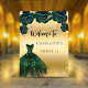 Ein Willkommenposter für eine süße 16., 16. Geburtstagsfeier. Ein Imitat goldener Hintergrund mit Imitaten goldenen Glitzer Glitzern, ein smaragdgrünes Kleid und Rose, Blumenmuster. Personalisieren und einen Namen hinzufügen.