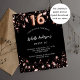 Ein klassischer schwarzer Hintergrund mit goldenen Sternen aus der Rose. Personalisieren und fügen Sie einen Namen und Party-Details hinzu. Nummer 16 wird mit einem Ballonstil-Skript geschrieben. 1 Blatt = 1 Einladung mit Druckkante bis Kante.