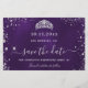 Eine gmädchenhafte und trendige Save the Date-Karte für eine Sweet 16, 16. Geburtstagsfeier. Ein lila, ungleicher Hintergrund. Dekoriert mit Imitaten silbernen Glitzer Staub und ein Tiara, Krone. Der Text: Save the Date ist mit einem großen angesagten, handgeschriebenen Stilskript geschrieben.