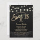 Sweet 16 Moderne Schwarze Rose Blütenschwarz Glitzer String Lichter Einladungen.
