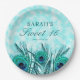 Sweet 16 Peacock Feathers Blue Aquamariner Glitzer Pappteller