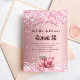 Rosa Farbverlauf mit Imitaten, Konfetti und einer romantischen Vintagen Kutsche. Personalisieren und fügen Sie ihren Namen, Party Details.