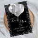 Eine Dankeschön-Karte für einen Sweet 16, 16. Geburtstag. Eine schicke schwarze Hintergrundfarbe. Mit Imitaten silberne Glitzer Tropfen, Farbe Tropfen Look und Ballons. Auf der Vorderseite große handgeschriebene Skript und den Text: Danke, Ihr Text, Titel und ein Datum. Zurück: Personalisieren Sie Ihre Dankeschön Notiz und Namen.