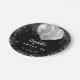 Ein schicker schwarzer Hintergrund. Dekoriert mit Imitaten silberne Glitzer Tropfen, Farbe Tropfausdruck, Glitzer und Ballons. Personalisieren Sie den Namen, das Alter und das Datum und fügen Sie ihn hinzu.