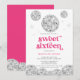Sweet 16 Silver Retro Disco PINK Glitzer Einladung