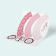 Kuchenwickler in tiefrosa Blumenstaub und Polka-Dot-Drucke mit Koordination von Rücken- und Kuchenoberflächen mit Blumenstaub. Picks nicht enthalten. Zusammenstellung erforderlich.