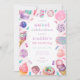 Feiern Sie Ihren besonderen Tag mit unserer Sweet Celebration Einladung. Dieses Aquarellbild ist mit einem Rand von Süßigkeiten und Süßigkeiten geschmückt. Personalisieren Sie den Text, um ihn einzigartig zu machen und Set den Ton für das süßeste Party aller Zeiten!