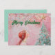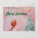 Eine Weihnachtspostkarte, wenn du unterwegs bist und will, einen Feiertagsgruß zu schicken. Die Vorderseite zeigt einen Weihnachtsbaum und eine junge Frau mit rotem Haar. Im Text steht: Frohe Weihnachten. Im hinteren Text steht: Und ein glückliches neues Jahr.