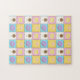 Befriedigen Sie Ihren süßen Zahn mit diesem farbenfrohen Muster, das schmackhafte Leckereien wie eine Schokoladeneismembran, einen lila mattierten Schokoladendonut, einen Zitronengelben Macaron, einen rosa und weiß wirbelnden Lollipop, getrennt von Schokoladenstückchen und umgeben von Regenbogensprinklen auf vier hellen Plätzen bietet.
