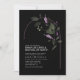 Feine blumengeschmückte Arrangements, subtile Konturen und moderne sans serif Schriftart in einer Farbpalette von lila, lila und sanft weiss grün, kombiniert mit schwarz-weiß Hintergrund, geben den Stücken in dieser eleganten Hochzeitssuite ein stimmungsvolles, romantisches Ambiente. Diese Hochzeitseinladung enthält einen gewölbten Blumenrahmen und eine Vorlage, um alle Ihre Veranstaltungsdetails einfach hinzuzufügen. Suchen Sie ID998, um die komplette Auflistung zu sehen.