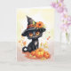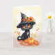 Diese schöne Halloween-Karte bietet eine niedliche schwarze Katze mit zauberhaften Augen, einem Hut und Kürbissen sowie einen orangefarbenen Kürbis. Wünschen Sie jemanden einen außergewöhnlichen und magischen Tag! Purr fect für diesen Katzenliebhaber!