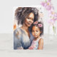 Schöne Abbildung einer afroamerikanischen Mutter mit ihrer Tochter mit Blume in ihren Haaren in einer hübschen Aquarellkunst. Glückliche Muttertagskarte mit einer personalisierten Botschaft im Inneren.