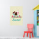 Ein Poster, das sagt: Süß. Mit einem leckeren Eis Thema. Illustriert mit einer Schokoladeneis-Bar, 3-Scoop-Sonnenschirmen mit Kirsche oben und Erdbeerfloat mit Schlagsahne. Kleine Erdbeeren und Kirschen am Boden. Hellgelber Hintergrund. Erfrischende warme Leckereien.