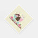 Haben Sie ein Eis-Party? Beginnen Sie mit diesen Papierservietten mit einem Thema aus süßem Eis. Illustriert mit einer Schokoladeneis-Bar, 3-Scoop-Sonnenschirmen mit Kirsche oben und Erdbeerfloat mit Schlagsahne. Kleine Erdbeeren und Kirschen. Hellgelber Hintergrund. Erfrischende, heiße Leckereien im Sommer.