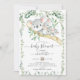Niedliche Baby Dusche Einladung mit einem süßen Baby Koala Bär Triplets mit Mama gerahmt mit Eukalyptus-Blätter. Dreh unsere Einladung vorbei, um ein passendes Eukalyptusblatt für eine besondere Touch zu sehen.