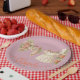 Add a cozy orchard touch to your fall baby shower with this red apple clothesline design. A sweet and rustic paper plate perfect for celebrating your little one in charming autumn style.