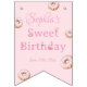 Complete your party decor with this adorable "Happy Birthday" banner! Designed to coordinate with the "Sweet One" collection, this bunting features whimsical pink letters accented with watercolor donuts, cupcakes, and sweet treats.