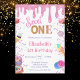 Adorable rosa Sprinklen süß eine 1. Geburtstagseinladung für Baby Girl. Niedliche Lollypops, Süßeis-Schmelztropfen und vieles mehr!