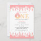 Dieses Design ist mit einem rosa Donut und einem pinkfarbenen, süßen Creme tropfenden Hintergrund ausgestattet. Feiern Sie den Geburtstag Ihres Liebsten, indem Sie diese Einladung zum Geburtstag in Rosa personalisieren. Perfekt für Mädchen zum ersten Geburtstag Einladung.