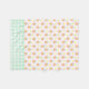 Süße Pfirsiche, weiße Retro-Blume und hellgrüner Gingham