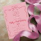 Feiern Sie Ihren ersten Geburtstag mit einer zauberhaften Rosa Bug-Einladung, die ein reizvolles rosa Coquette-Design mit einer herzförmigen Tortenabbilderung bietet.