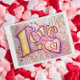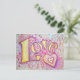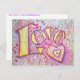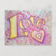 Aquarellmalerei des goldgelben Wortes "Liebe" mit Doppelherz. Rosa und lila beleuchten die Buchstaben und das Herz. Ein leichter Glitzer über die Decke verleiht dem Gemälde ein funkelnd Glühen. Personalisieren Sie dieses Liebe Wort Art Postcard mit Ihrem eigenen Text und Bildern mithilfe des Buttons "Anpassen". Machen Sie Ihre personalisierte Liebe Notizen, Postkarten oder Einladungen!