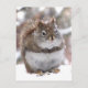 Auf dieser Postkarte befindet sich ein bezauberndes rotes Eichhörnchen im flauschigen weißen Schnee. Was denkt sie?