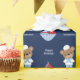 Das ansprechende nautische Design zeigt eine niedliche Abbildung eines Affen mit einem Seemannsoutfit und einem hellblauen und roten Segelboot. Personalisieren Sie es mit einem Namen oder Text Ihrer Wahl für ein freundliches Design.