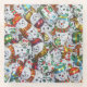 Ein festliches Design mit einer Mischung aus niedlichen Schokoladenschneemännern in bunten Folienwrappern. Untersetzer mit weißem, blauem, rotem, grünem, goldfarbenem und lila, individualisierbarem Design für Sie, um Ihre eigenen Texte, Bilder und Ideen zu personalisieren. Bild erstellt mit einem Original-Foto und digitale Techniken.